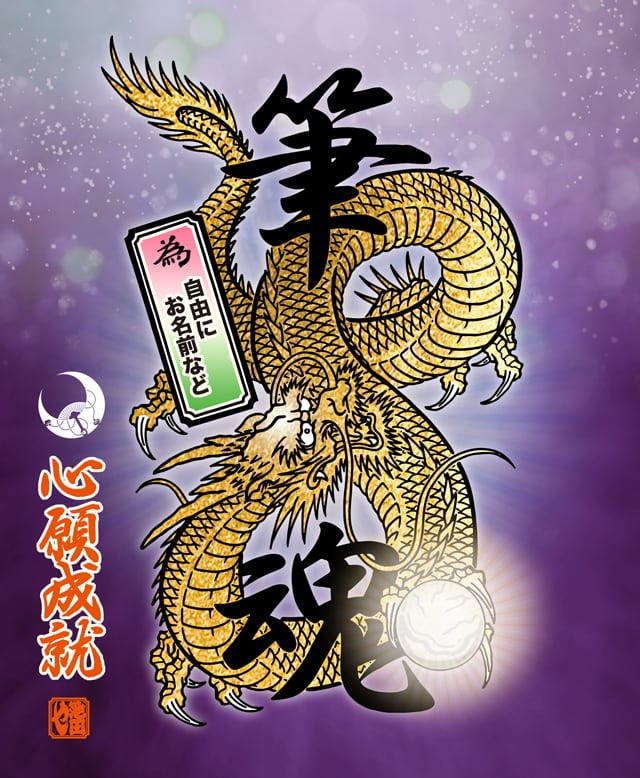 縁起の良い【筆魂と金龍】をベースとして